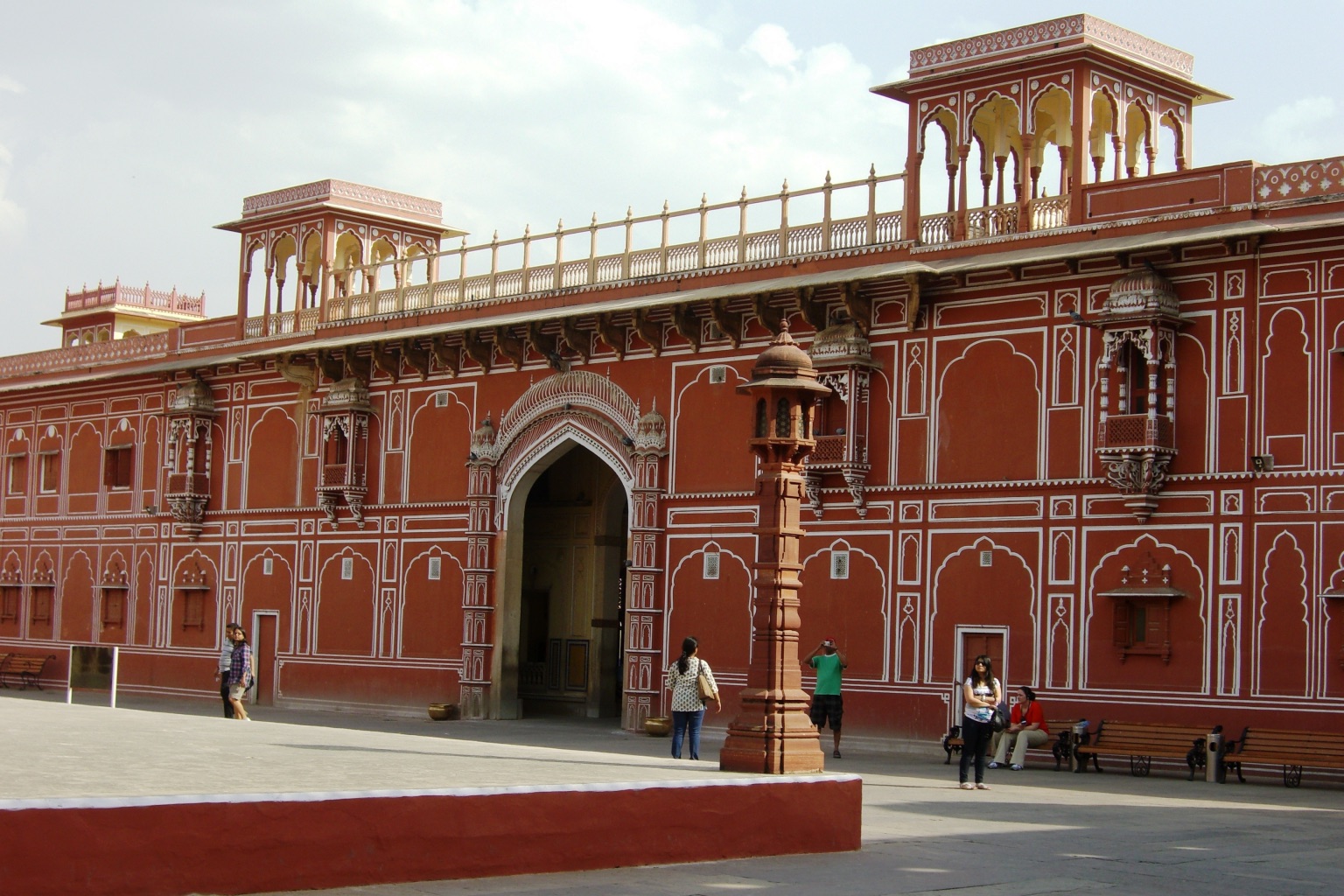 Construit en grès rouge et rose, le palais se trouve non loin du City Palace, en bordure du harem royal. Son but initial était de permettre aux dames de celui-ci d’observer la vie et festivités de la rue sans être vues.