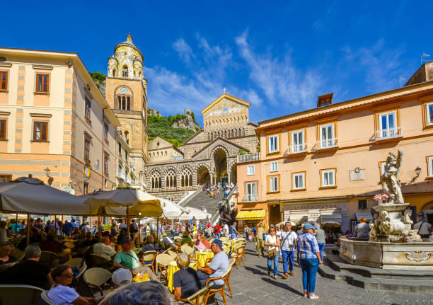 Le cœur de la ville est la Piazza del Duomo, où se trouve la magnifique cathédrale d’Amalfi, dédiée à Saint-André. La place est entourée de cafés, de boutiques et de restaurants, offrant un cadre animé et une atmosphère accueillante.