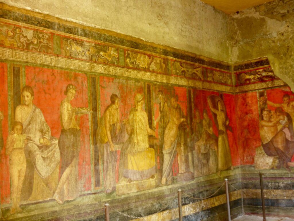 En dehors du centre-ville, vous trouverez des villas luxueuses, telles que la Villa dei Misteri. Cette villa est célèbre pour ses fresques énigmatiques qui dépeignent des rituels mystérieux.