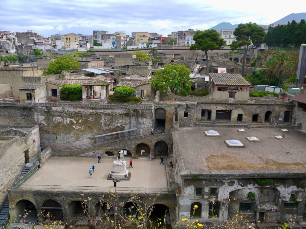 Herculanum était une station balnéaire prisée par la classe aisée romaine, avec de somptueuses villas, des thermes et des installations de loisirs. Contrairement à Pompéi, qui a été principalement recouverte de cendres et de lapilli, Herculanum a été enfouie sous une couche plus épaisse de boue volcanique, ce qui a contribué à mieux préserver certains éléments architecturaux et même des objets en bois et en tissu.