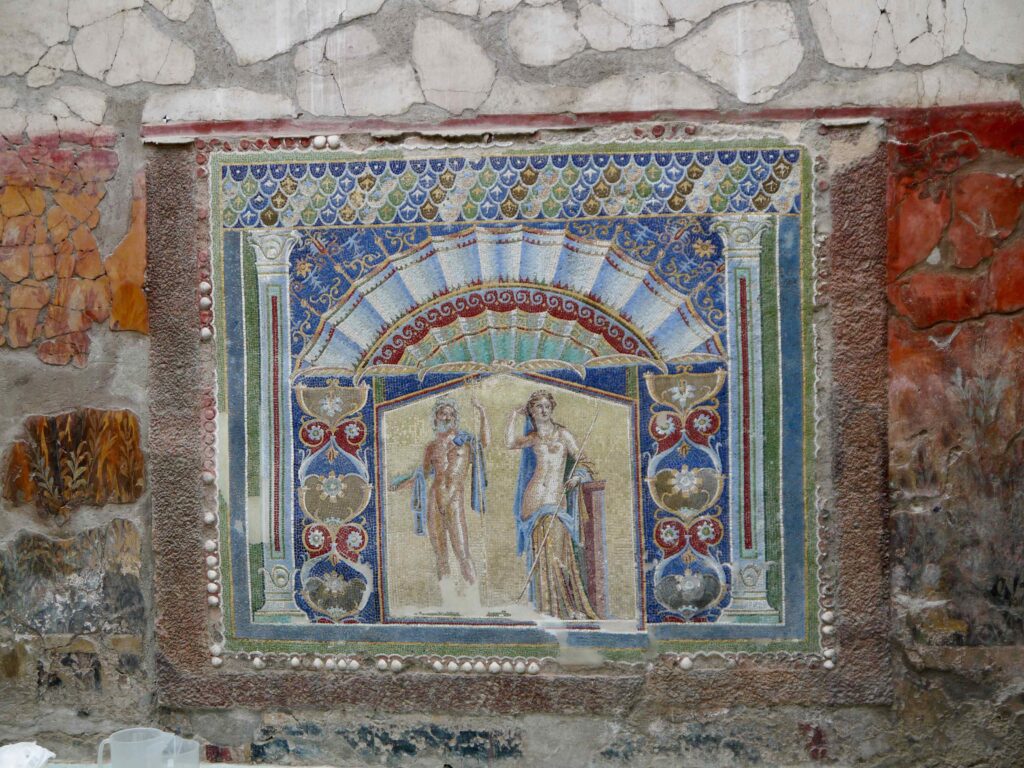 Herculanum abrite plusieurs villas et maisons luxueuses appartenant à la classe aisée romaine. Les fouilles ont révélé des fresques murales, des mosaïques, des atriums élaborés et d’autres éléments architecturaux bien conservés.