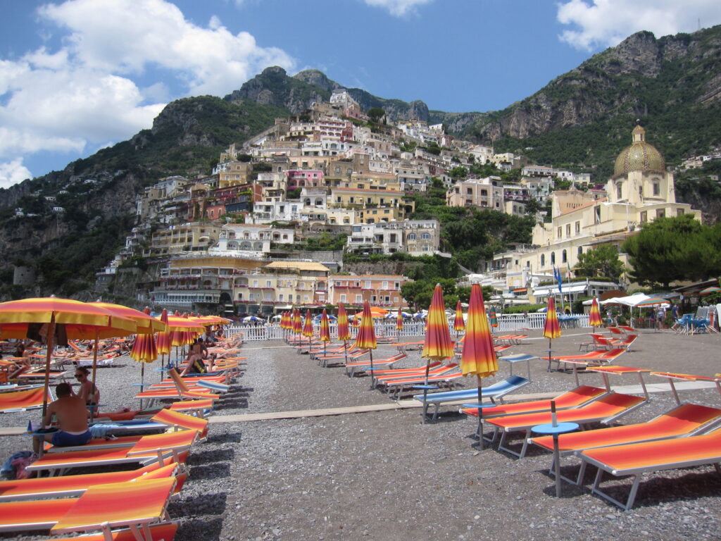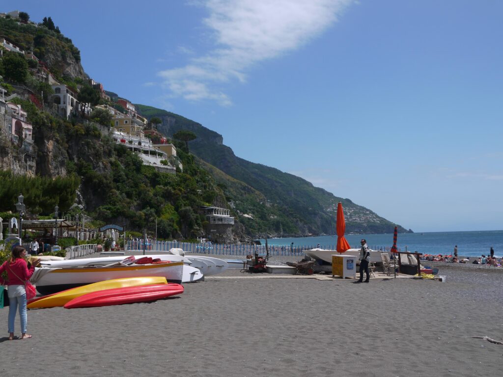 La principale plage de Positano, Spiaggia Grande, est une bande de sable en arc de cercle bordée de restaurants, de cafés et de boutiques. C’est l’endroit idéal pour se détendre au soleil, nager dans les eaux cristallines de la mer Tyrrhénienne et profiter de l’atmosphère animée.