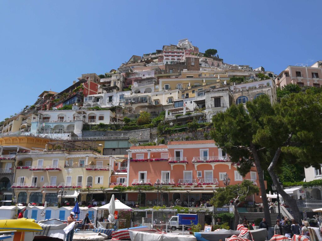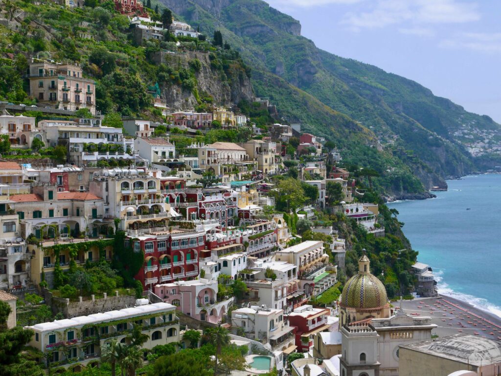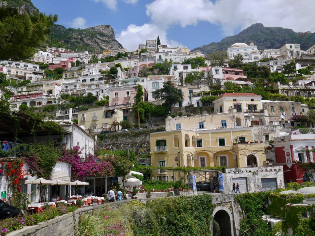 Positano est célèbre pour son architecture caractéristique, avec des maisons de toutes les couleurs qui semblent s’accrocher aux collines abruptes surplombant la mer. Cette architecture crée un paysage spectaculaire et photogénique. Comme Amalfi, la ville est très touristique et accueille de nombreux visiteurs encombrant parfois les ruelles escarpées du centre jusqu’à la plage.