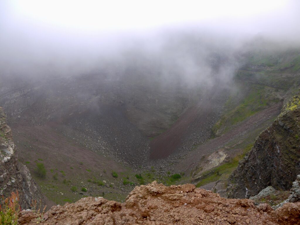 La principale attraction du Vésuve est bien sûr son cratère. Vous pouvez atteindre le sommet du volcan par une courte randonnée. Du cratère, vous aurez une vue spectaculaire sur la baie de Naples, la ville de Naples elle-même, ainsi que sur les villes historiques de Pompéi et Herculanum. Nous n’avons pas eu beaucoup de chance lors de notre visite car les nuages ont bouché la vue et le cratère n’a été visible que quelques instants mais la visite vaut d’être faite.