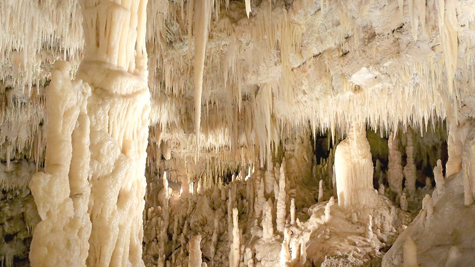 Les grottes ont été découvertes en 1938 et sont depuis devenues un site touristique populaire. Elles s’étendent sur plus de 3 kilomètres de galeries souterraines, avec des formations calcaires impressionnantes et une diversité de stalactites, stalagmites, colonnes et concrétions. La grotte la plus célèbre est la Grotta Bianca, connue pour ses formations d’un blanc éclatant.