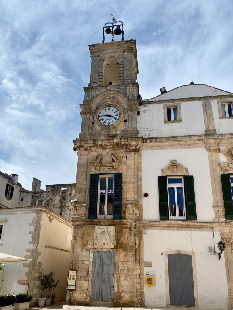 Le point culminant de Locorotondo est la Piazza Vittorio Emanuele, la place principale du village. La place est entourée de bâtiments historiques, dont l’église mère de Saint-Georges, qui offre une vue panoramique sur les environs depuis son parvis.