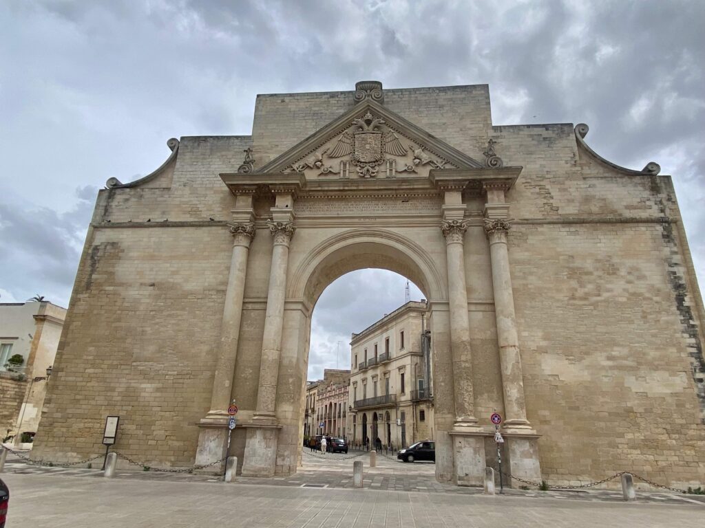 La « Porta di Napoli » est une porte monumentale qui servait autrefois d’entrée principale à la ville de Lecce du côté nord. Elle présente des éléments décoratifs typiques du style baroque, avec des sculptures, des ornements en pierre et d’autres détails élaborés. La porte a été construite au XVIe siècle et a subi des restaurations au fil des ans pour préserver son apparence historique.